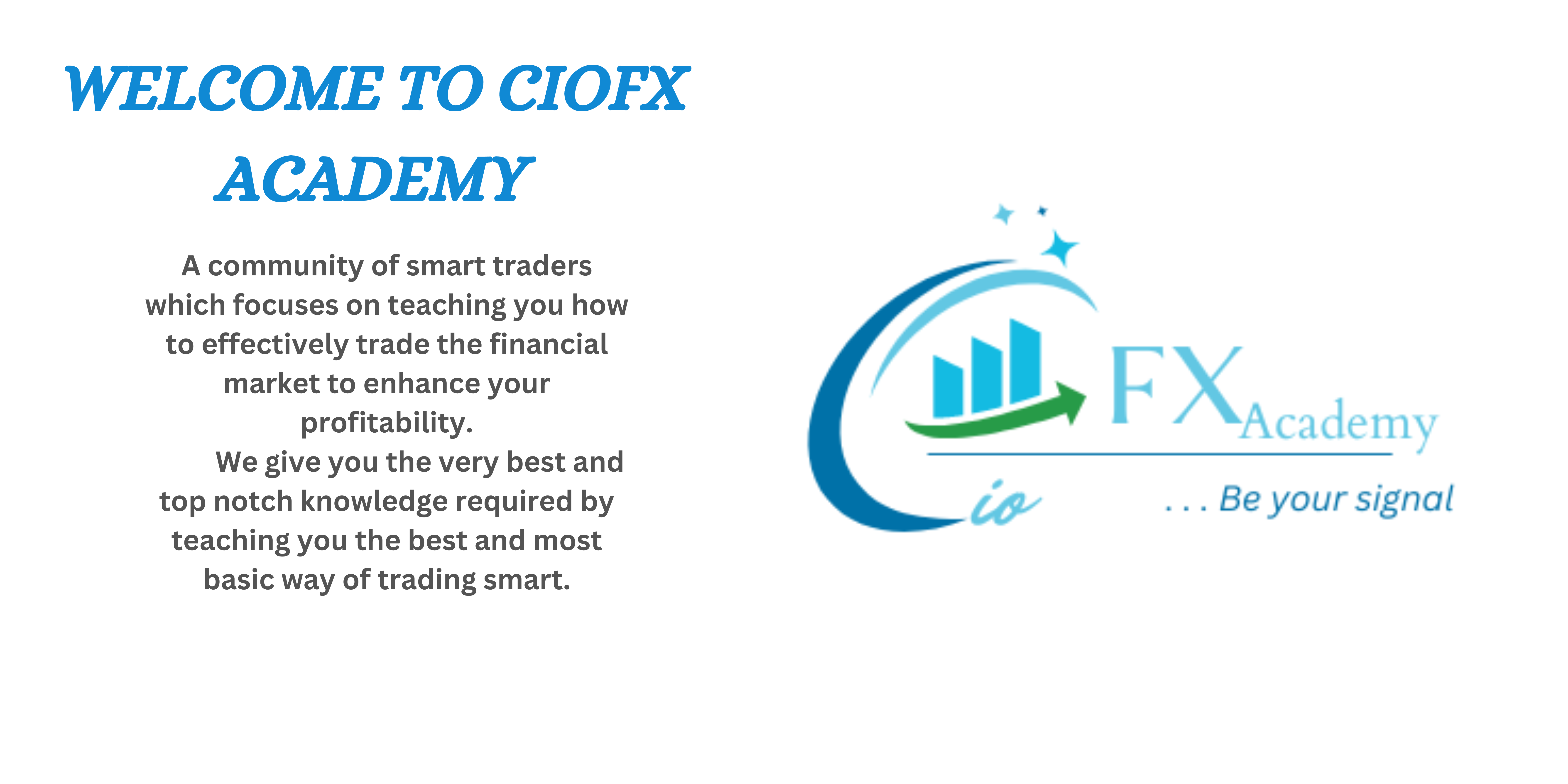 Here at CioFx Academy, We mentor traders to be profitable and trade independently. Our mission is to help you become a successful trader by equipping you with the knowledge, tools, and resources you need to navigate the market. We are committed to providing unbiased, accurate, and up-to-date information so that you can make informed decisions and achieve your goals. Whether you're just starting out or you're a seasoned trader, we have something for you.
